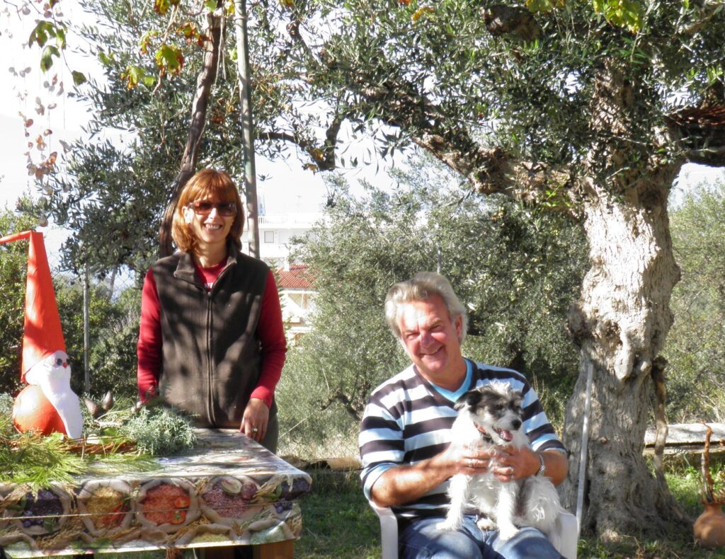 One November afternoon the couple were on the doorstep, Marina with several bulging plastic bags and a basket with a red pointy hat sticking out. That should have alarmed us straight off! Marina rushed, bag-laden, past us into the house with her usual Greek proprietorial charm, while Andreas hung back at the door, chatting. The imminent olive harvest was very much on his mind because in rural areas the whirring sound of harvesting equipment trumps sleigh bells every time.